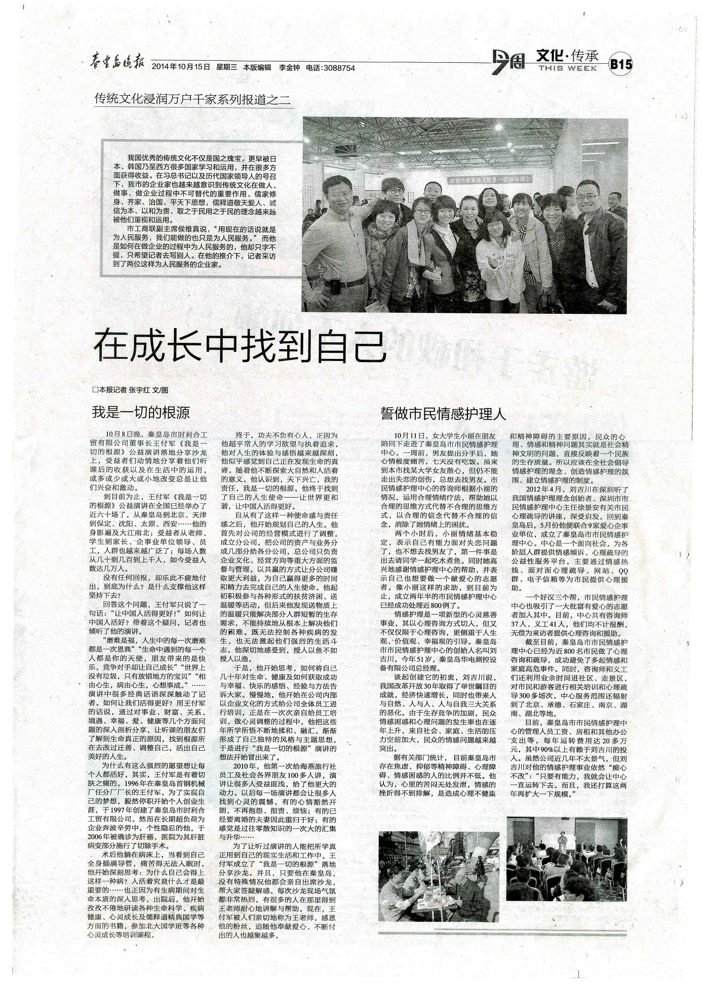 為了讓聽過演講的人能把所學真正用到自己的現實生活和工作中,王老師還成立了“我是一切的根源”落地分享沙龍。并且,只要他在秦皇島,如沒有特殊情況,他一定會親自出席沙龍,幫大家答疑解惑。每次沙龍現場氣氛都非常熱烈,有非常多的人在那里得到王老師耐心的講解與幫助。現在,王付軍被人們親切地稱為王老師,感恩他的粉絲,追隨他奉獻愛心、不斷付出的人越聚越多。